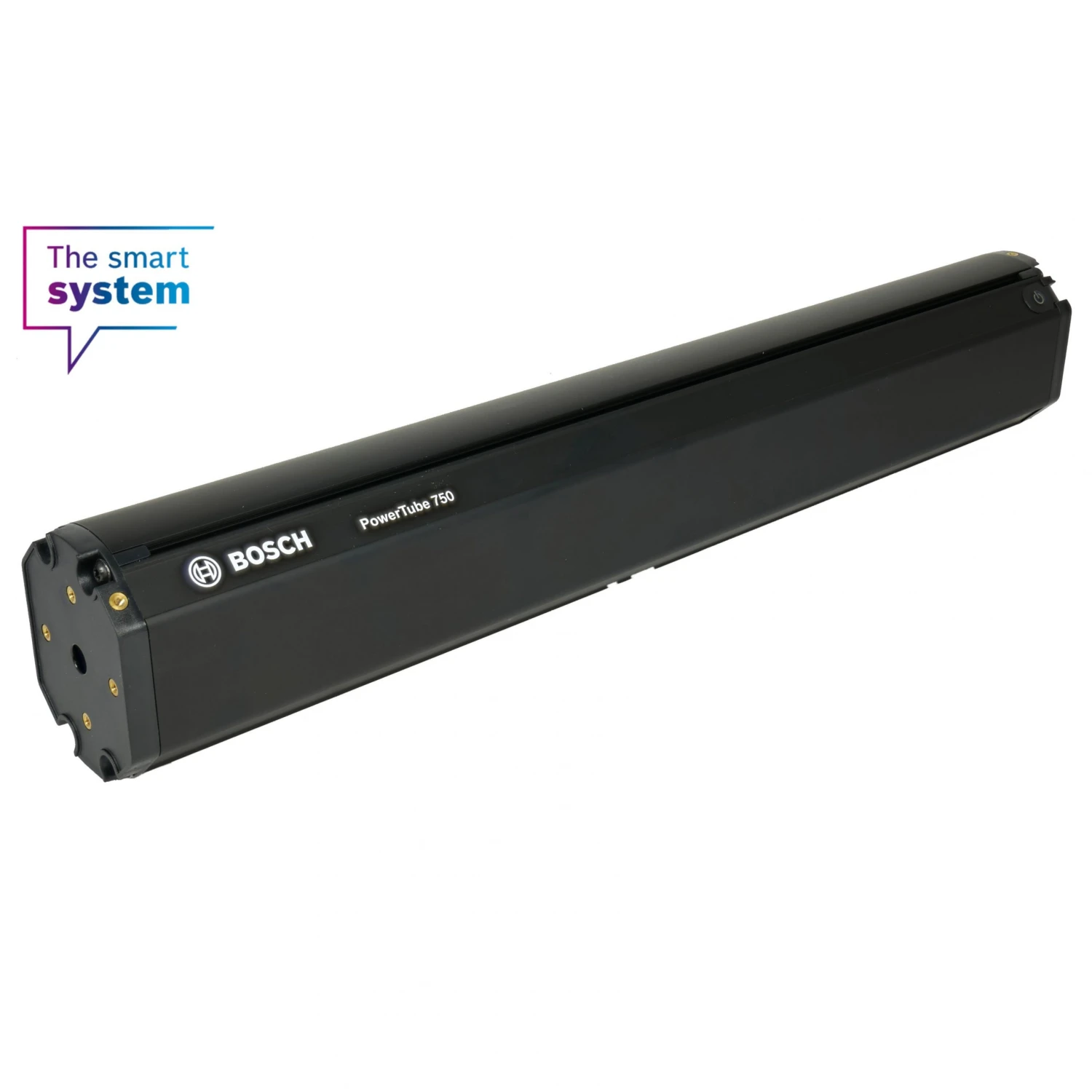 La Batería BOSCH PowerTube 625 Horizontal permite a las eBikes recorrer grandes distancias sin esfuerzo. Gracias a su tamaño compacto y su diseño minimalista, la batería se puede integrar en la eMTB perfectamente. La sofisticada tecnología de las baterías de iones de litio que se pueden integrar dentro del cuadro garantiza un placer de conducción sin preocupaciones, ya que un seguro evita que la batería se caiga, incluso en terrenos complicados. A pesar de ello, las baterías se pueden retirar con facilidad.¿Qué más se puede pedir? La nueva PowerTube 625 te permite disfrutar durante trayectos largos y montañosos, al tiempo que reserva gran cantidad de energía para cada aventura. Gracias a una capacidad nominal de 16,7 Ah y un contenido de energía de aprox. 625 Wh, esta batería de iones de litio pone las máximas autonomías y altitudes al alcance de tu mano. Tras aprox. 3.7 h, la batería está completamente cargada con el Fast Charger de 6 A, mientras que la mitad de la carga se alcanza en aprox. 1,4 horas.Debido a su diseño más estilizado, la batería es más fácil de transportar y también es ideal para su uso como batería de repuesto. La batería PowerTube es compatible con la tecnología DualBattery.