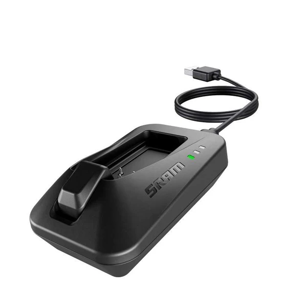 El Cargador batería Sram eTap AXS permite cargar con seguridad y de una forma rápida las baterías originales de los cambios electrónicos.