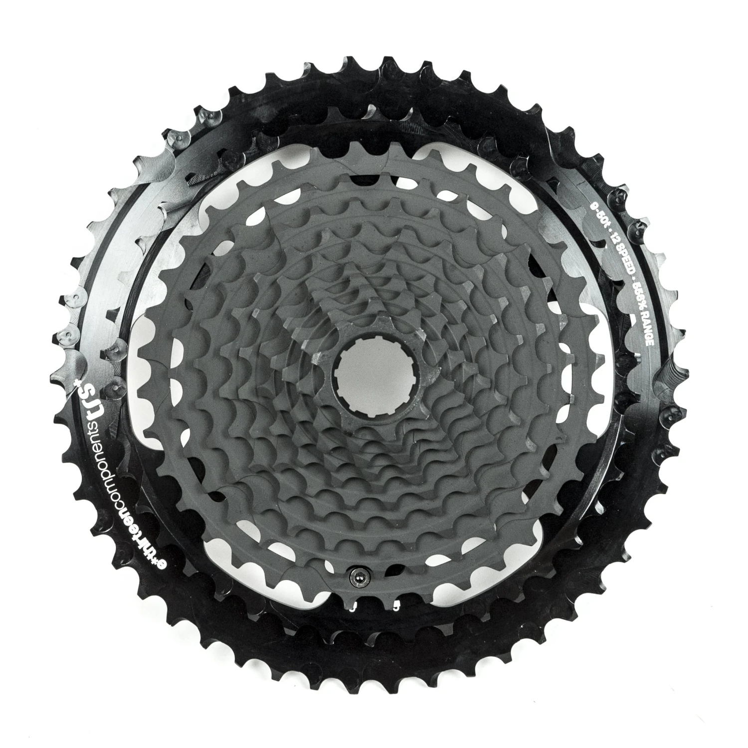 Con un rango del 556%, el Cassette 12V e*Thirteen TRS PLUS 9-50 ofrece un rango significativamente superior al de un cassette SRAM Eagle con menos peso. Por lo tanto, es el reemplazo perfecto para los cassettes SRAM de 12 velocidades desgastados. Además de eso, puede usar un plato más pequeño y, por lo tanto, tener más distancia al suelo y un equipo más ligero en la montaña para subir a la rampa más empinada.Características del Cassette 12V e*Thirteen TRS PLUS 9-50:Uso: XC, all mountain, Enduromaterial de los 2 grandes: aluminiomaterial de los 10 pequeños: aceroTecnología: TRS +Velocidades: 12Montaje: núcleo XDCalificación: 9-11-13-15-17-20-23-27-31-36-42-50Rango: 556% RuedaCompatibilidad: Sram Eagle, Shimano XTR, XT y SLT de 12 vColor: negroPeso según el fabricante: 369 gPeso pesado: 405 g556% de ancho de banda (SRAM Eagle de 12 velocidades, 10-50 Z: 500% / Shimano XTR de 12 velocidades, 10-51: 510%)permite el uso de una cadena más corta y un Plato más pequeño en comparación con otras transmisiones de 12 velocidadespor el diseño de 2 partes de aluminio y el grupo de acero intercambiable por separadocambios de marcha más rápidos a los piñones más grandesnuevo sistema de fijación