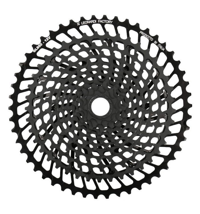 El Nuevo Cassette 12V LEONARDI General Lee 9-48 es la mejor opción para transmisiones 1×12. Hasta un 33% más de desarrollo que las actuales transmisiones de 12V. Sube ligero con el 48 y baja sin perder desarrollo con el 9. Minimiza los saltos y expande tu rango sin límite con el 948 • Acero mecanizado partiendo de un bloque sólido, endurecido y tratado superficialmente para mejorar la durabilidad, sonoridad y resistencia a la corrosión. Nuevas y optimizadas fases de cambio, engrane y cambio más silencioso incluso bajo tensión gracias al perfil de diente SharkFin. Aluminio 7075-T6 anodizado en color Oro para los 2 ultimos piñones. Fases de intercambio rediseñadas para un cambio imperceptible tanto cuesta arriba como cuesta abajo. Hecho en CNC por una sola pieza de aluminio. Saltos más progresivos en la última parte, máximo 17% vs 20% de la competencia.