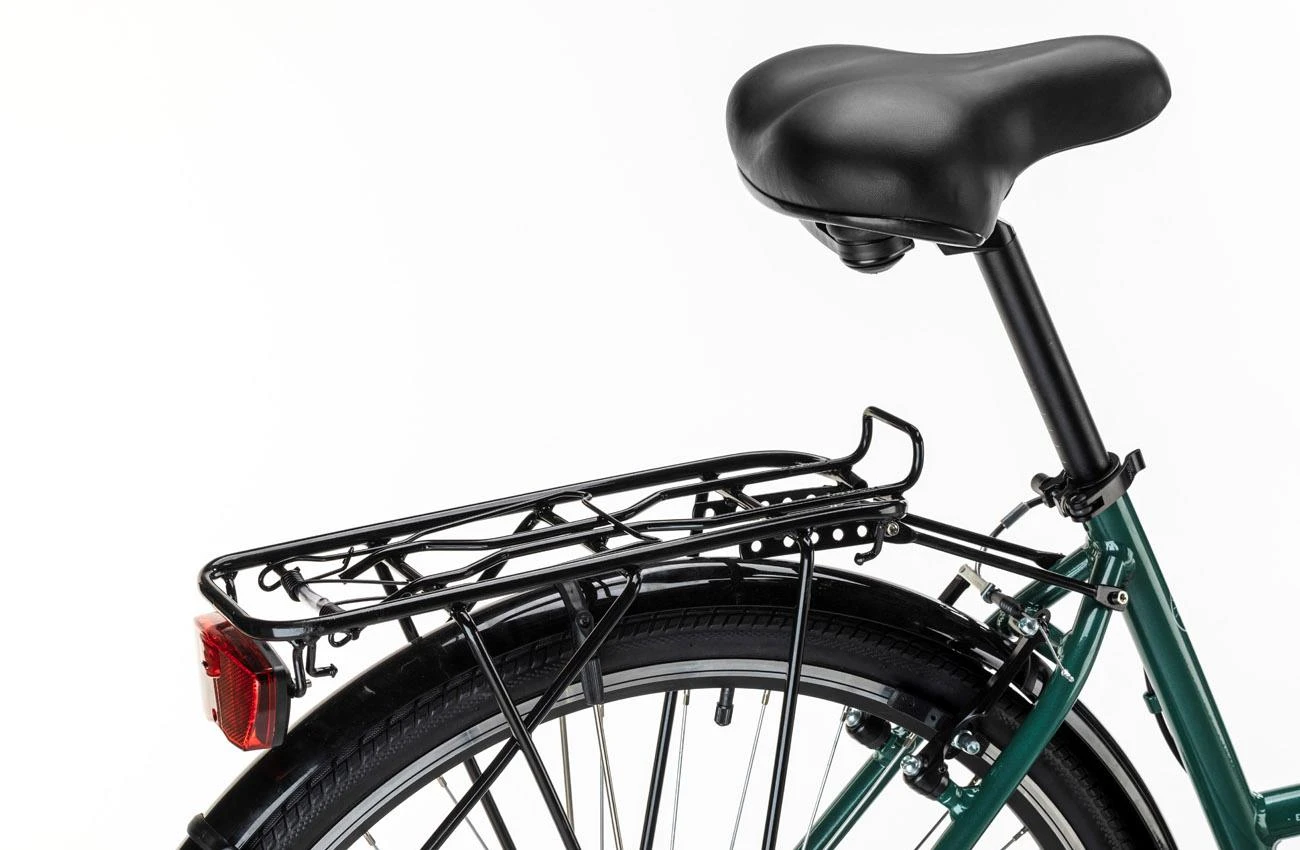 Pata de cabra, transportín trasero, piloto trasero y faro delantero de Led, guardabarros y cubrecadenas. Cierres rápidos para las dos ruedas y el sillín.