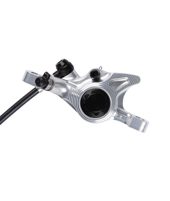 Los frenos de disco HOPE XCR Pro X2 Plata tienen la calidad y los espectaculares acabados de la marca, además de un peso impresionante. Por eso, estos frenos de han sido pensados para el XC y el Downcoutry, posicionándose en lo más alto de esta categoría.La maneta lleva grabado XCR en su frontal está fabricada totalmente en carbono. Con un esmerado mecanizado y tornillería de titanio se consigue la combinación perfecta para llegar al peso pluma (199 gr el delantero ). La pinza X2 no se queda atrás en acabados y tecnología, aportando toda la seguridad y fiabilidad de la marca.Estamos ante un freno sin concesiones, tanto para una carrera como para salir a disfrutar con los amigos… con un diseño, peso y tecnología que no pasará desapercibido nunca!