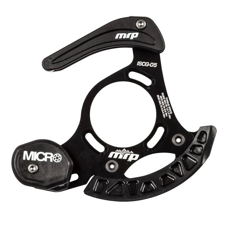 El Guia cadenas MRP Micro 28-32 Black esta fabricado en aluminio para platos de 28 a 32 dientes con anclaje ISCG5. Este guía tiene acabados de alta calidad y es altamente resistente. Con el podrás afrontar cualquier desafió con total garantía de que tu cadena estará siempre en su sito gracias a la polea y al nuevo bloque protector G. Incluso en condiciones de barro el Guia cadenas MRP Micro 28-32 mantiene su rendimiento y fiabilidad. Ademas tu plato estará totalmente protegido de las rocas gracias al protector de Nylon extra duro, todo esto con un peso muy controlado.