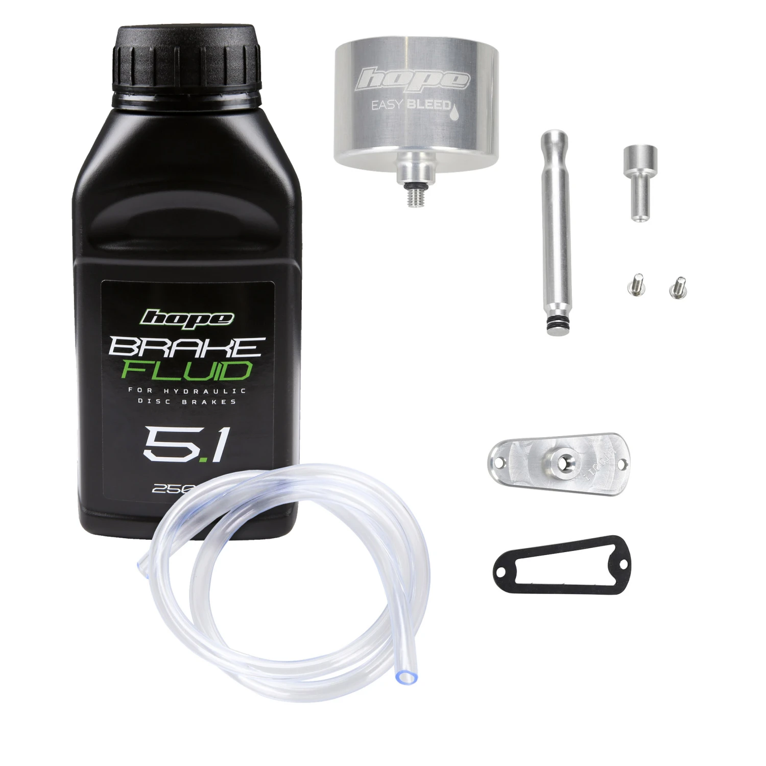 El kit de sangrado Hope TECH 3 dejaras el circuito de tus frenos Hope como nuevos. Contiene un frasco de sangrado con su conector, un tapón de deposito especifico con su junta, un tubo de pinza para recuperar el aceite y 250 ml de DOT.Características del kit de sangrado Hope TECH 3:Kit de sangrado completo HopePara frenos hope con maneta Tech 3Entregado con 250 ml de DOTContenido:1 frasco de sangrado con conector1 tapón de depósito con junta especificos1 tubo de pinza para recuperar el aceite250 ml de DOT