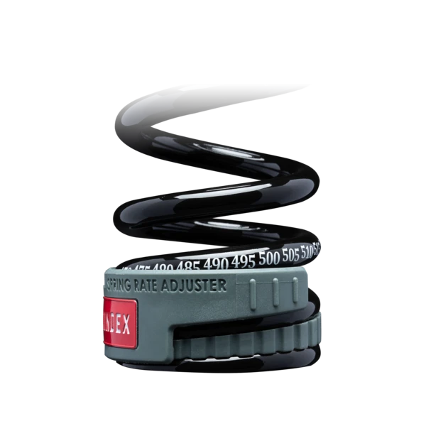 El Muelle SPRINDEX Ajustable es el único muelle del mercado que te da la posibilidad de ajustar la dureza. Una ingeniosa solución que te permite variar la dureza de un mismo muelle para conseguir un ajuste más preciso con tan solo girar el dial incluido. Por ejemplo, un muelle de 550 lb lo podrás pasar hasta 610 lb subiendo la dureza 10 lb en cada click.Como se consigue esto? Por que una de las características que definen la dureza de un muelle es el número de espiras que actúan, si reduces eso aumentas la dureza del muelle, ingenioso y sencillo.A pesar del novedoso sistema de ajuste de la dureza es un muelle ligero ya que está fabricado en el mismo material que otros muelles ligeros del mercado, acero Super High Tensile.Hay tres medidas de muelle disponibles: 55 mm, 65 mm y 75 mm. Cada largo de muelle tiene una capacidad de ajuste diferente, en general mientras más corto el muelle mayor es el rango de ajuste.Otra particularidad de este muelle es que incluye unos adaptadores para poderlo adaptar a la mayoría de amortiguadores del mercado, un mismo muelle para varias marcas ( Fox, Marzocchi, Rock Shox, Öhlins, DVO, Cane Creek, X-Fusion y más ) si quieres consultar la compatibilidad del muelle con tu amortiguador haz clic aquíLos adaptadores mejoran el ajuste entre el muelle y el amortiguador. Están hechos de Delrin lo que garantiza una baja fricción y gran resistencia. Mejoran el rendimiento del amortiguador al permitir que el muelle gire más libre durante la compresión.Además por cómo se han dispuesto las espiras es un muelle progresivo, siendo lineal en aproximadamente un 80% del recorrido y progresivo el 20% restante por lo que aguanta mejor en grandes impactos y absorbe muy bien las pequeñas irregularidades.¿Estamos ante el muelle definitivo? si no lo es, se acerca mucho.